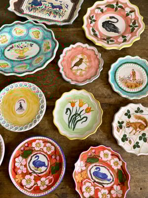 These loose paintings upon the ceramics, make each piece an original work of art.