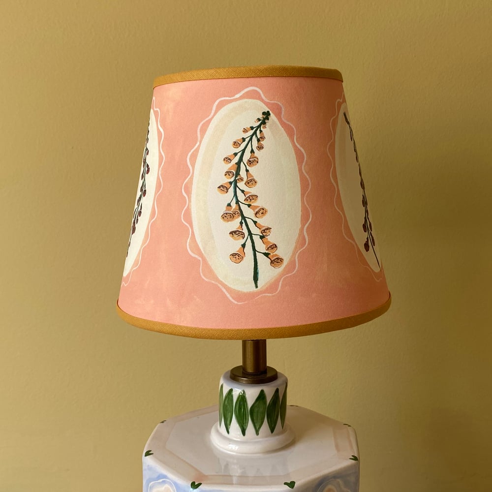 Each design is originally hand-painted, they have been reproduced as digitally printed papers and made up into lampshades here in the UK.