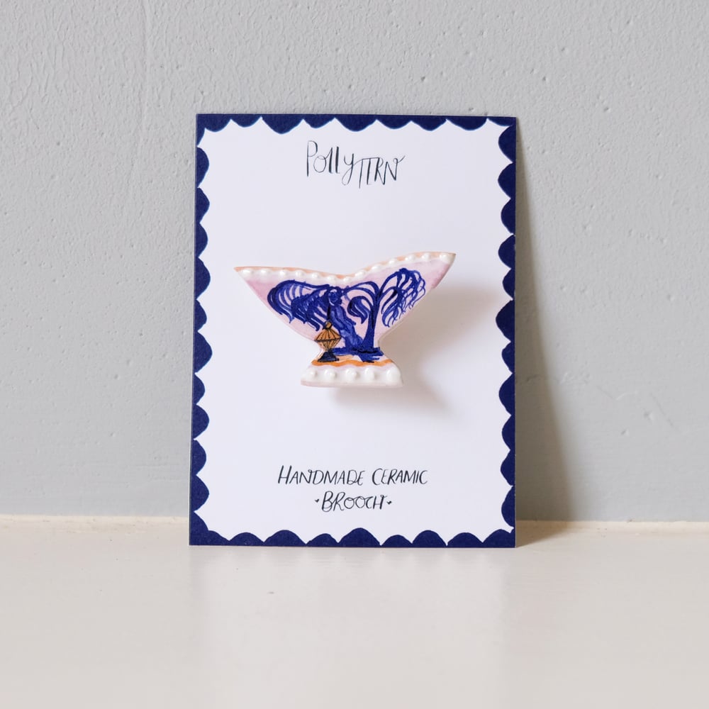 Handmade Ceramic Brooch - Romantic Vase