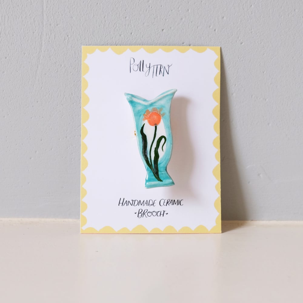 Handmade Ceramic Brooch - Romantic Vase Tulip