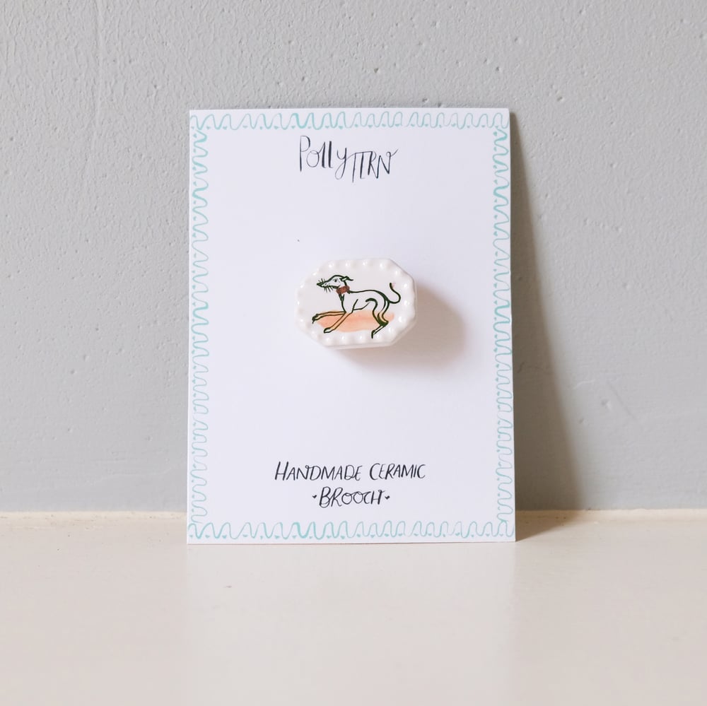 Each shape is cut from a rolled out slab of white eartenware clay. Some are slip trailed. Dired slowly and fired in the kiln. Dipped in a tin glaze, hand painted and fired a second and final time.