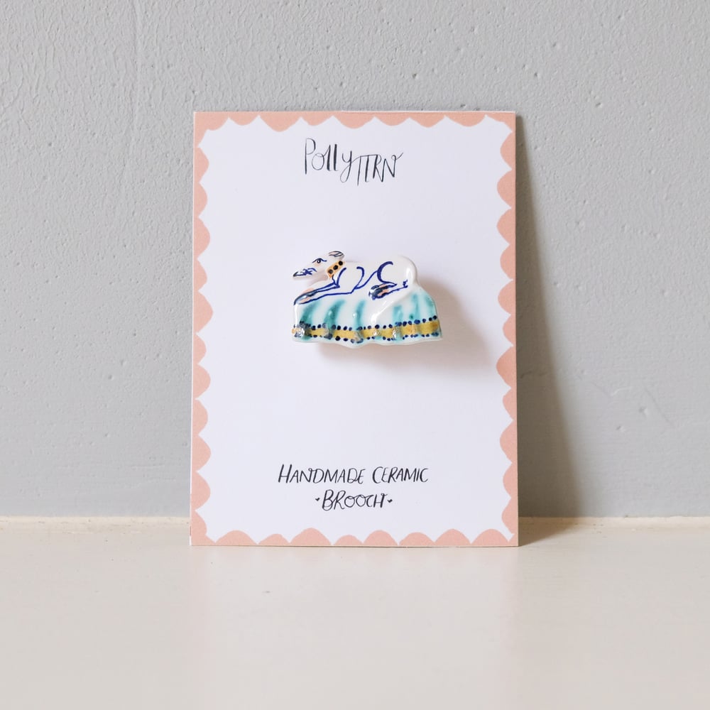 Handmade Ceramic Brooch - Whippet laying