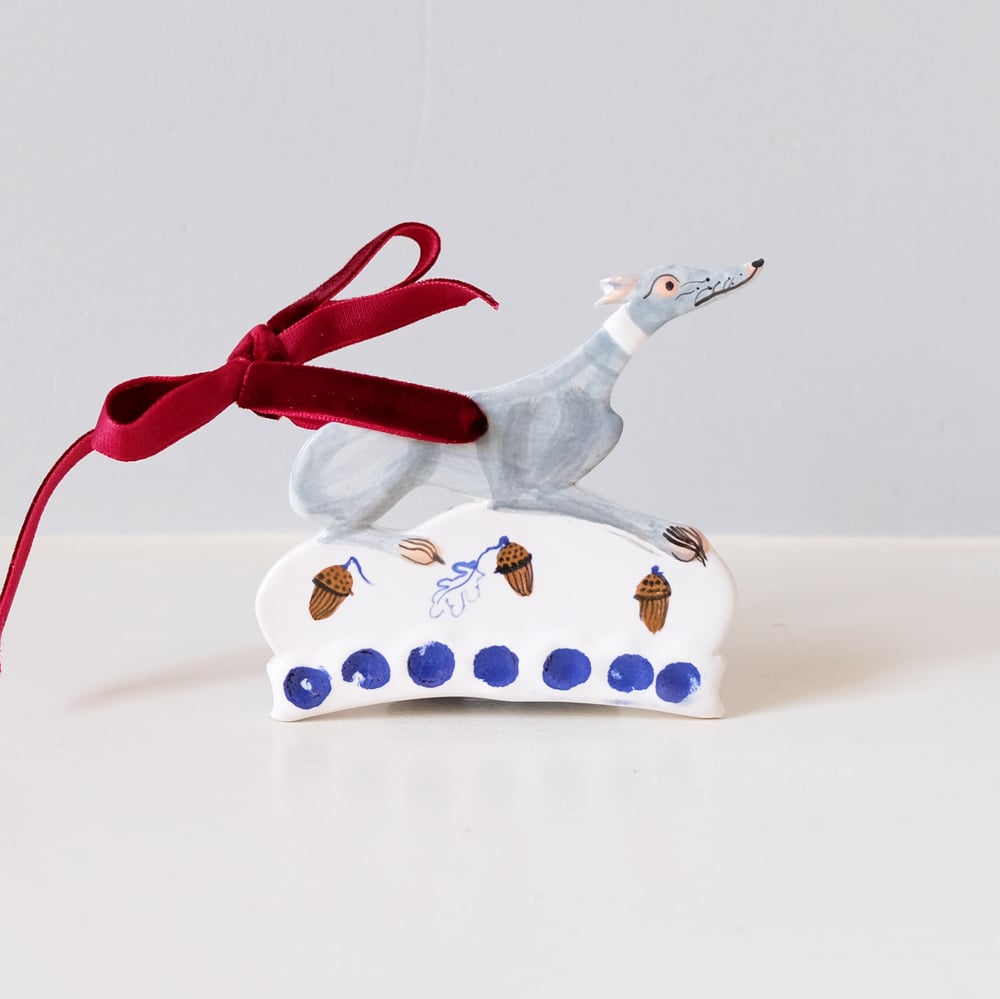 Image of Hanging Ornament - Blue Sighthound with acorns