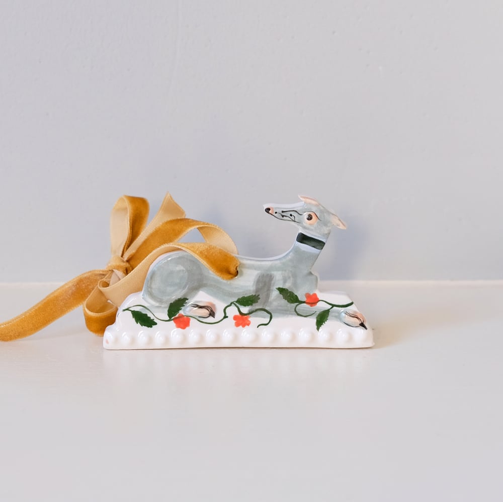 Hanging Ornament - Blue Sighthound with flowers and leaves