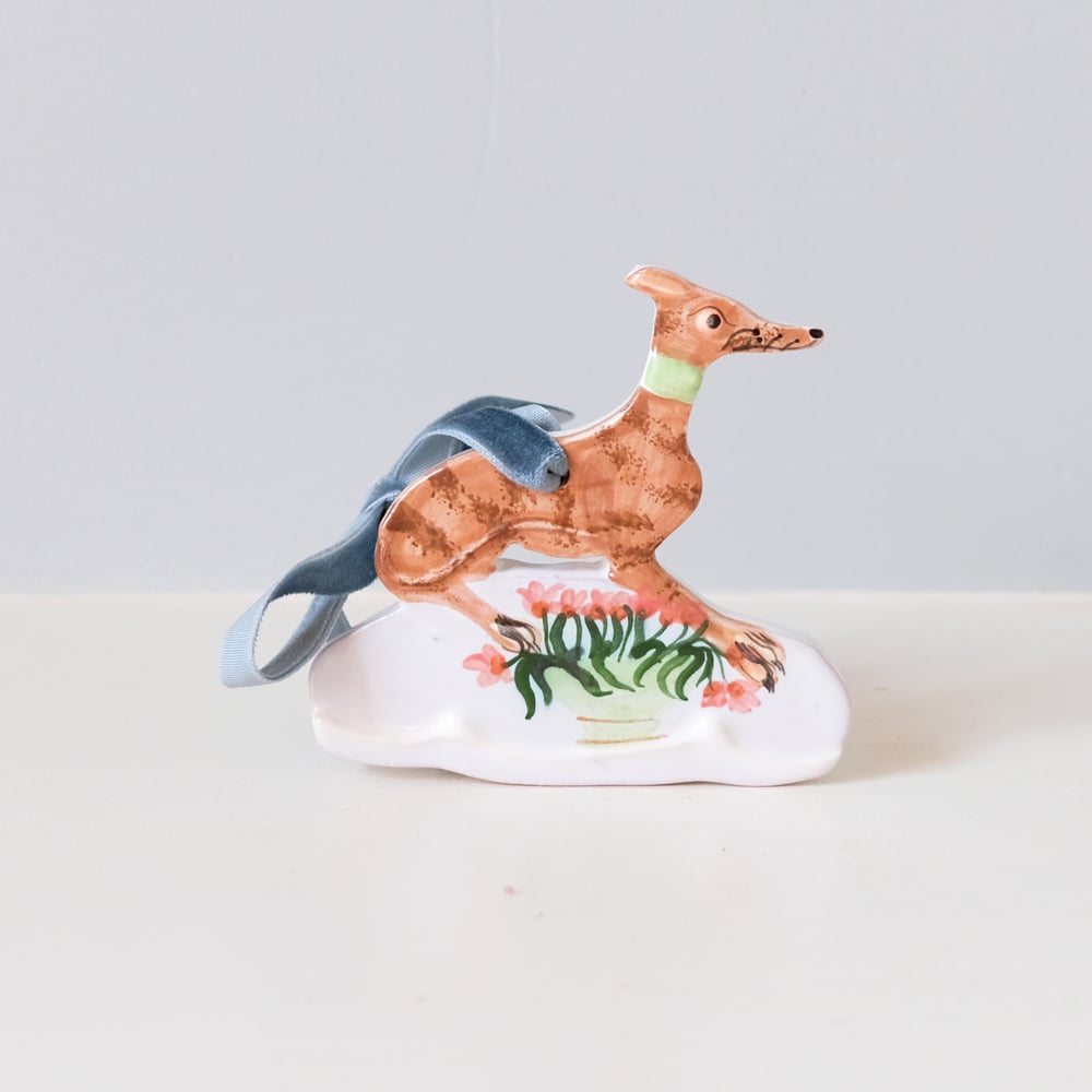 Each ornament is handmade. Individually rolled and cut out from a slab of clay. They are dipped in a tin glaze, with each one being hand-painted and fired twice in a kiln.