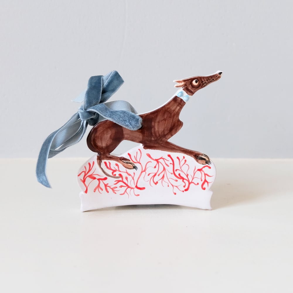 Each ornament is handmade. Individually rolled and cut out from a slab of clay. They are dipped in a tin glaze, with each one being hand-painted and fired twice in a kiln.