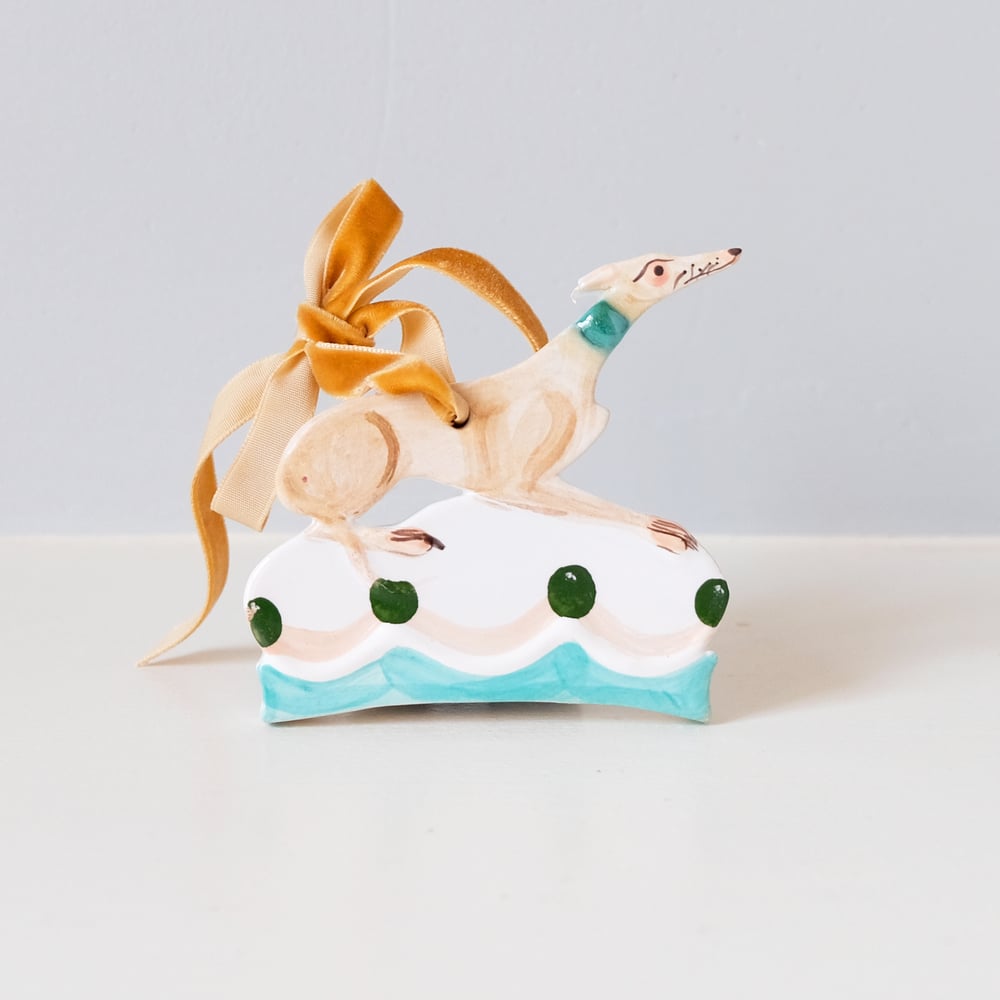 Hanging Ornament - Fawn sighthound yellow ribbon