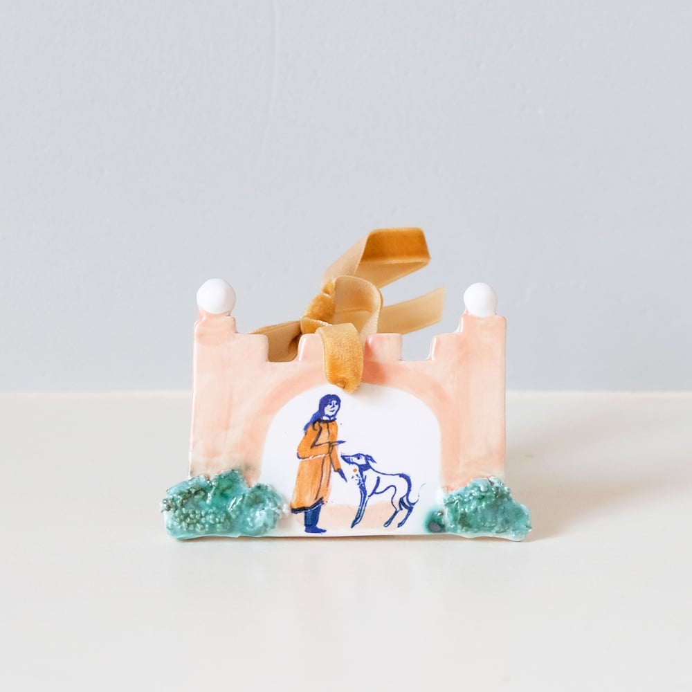 Each ornament is handmade. Individually rolled and cut out from a slab of clay. They are dipped in a tin glaze, with each one being hand-painted and fired twice in a kiln.