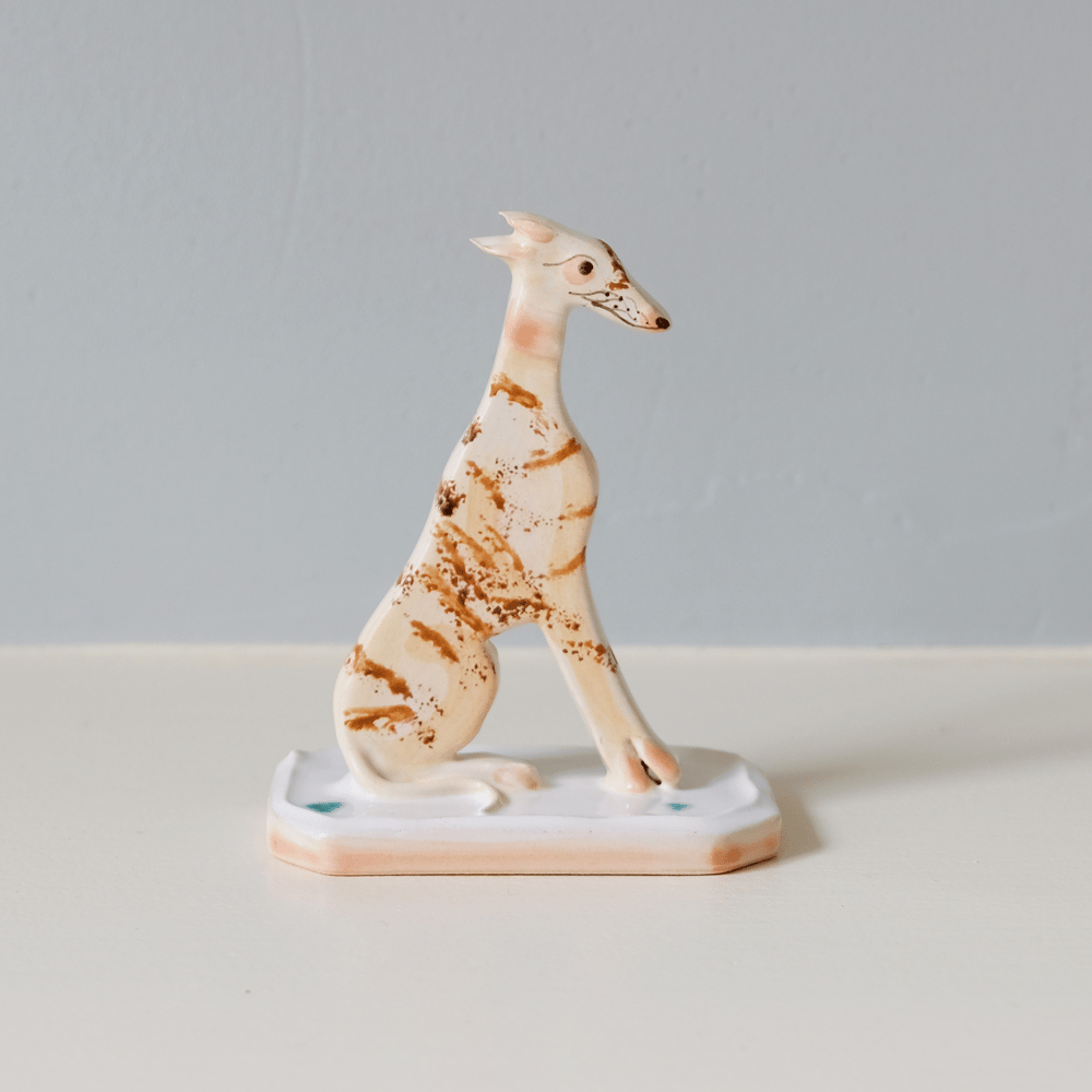 Each Whippet is cut out from a slab of clay, hand-built and hand-painted; therefore, each one has its unique details, with some slightly bowing to add character and life to each piece. I love how my process ends up with each whippet looking like a unique character, with noses slightly longer than others, just like our beloved Whippets and Sighthounds