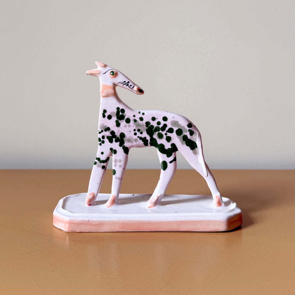 Each Whippet is cut out from a slab of clay, hand-built and hand-painted; therefore, each one has its own unique details, with some slightly bowing to add character and life to each piece. I love how my process ends up with each whippet looking like a unique character, with noses slightly longer than others, just like our beloved Whippets and Sighthounds
