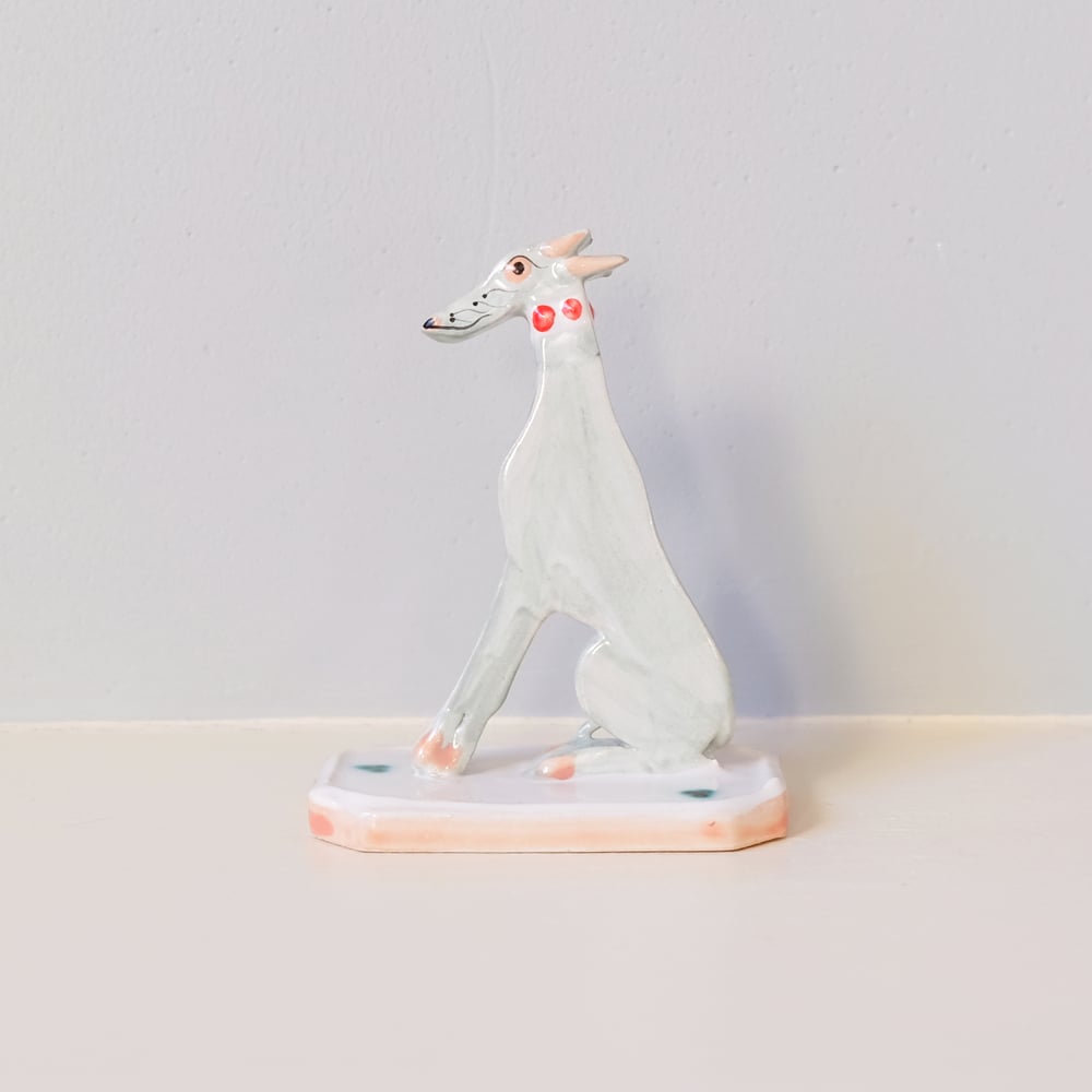 Each Whippet is cut out from a slab of clay, hand-built and hand-painted; therefore, each one has its own unique details, with some slightly bowing to add character and life to each piece. I love how my process ends up with each whippet looking like a unique character, with noses slightly longer than others, just like our beloved Whippets and Sighthounds
