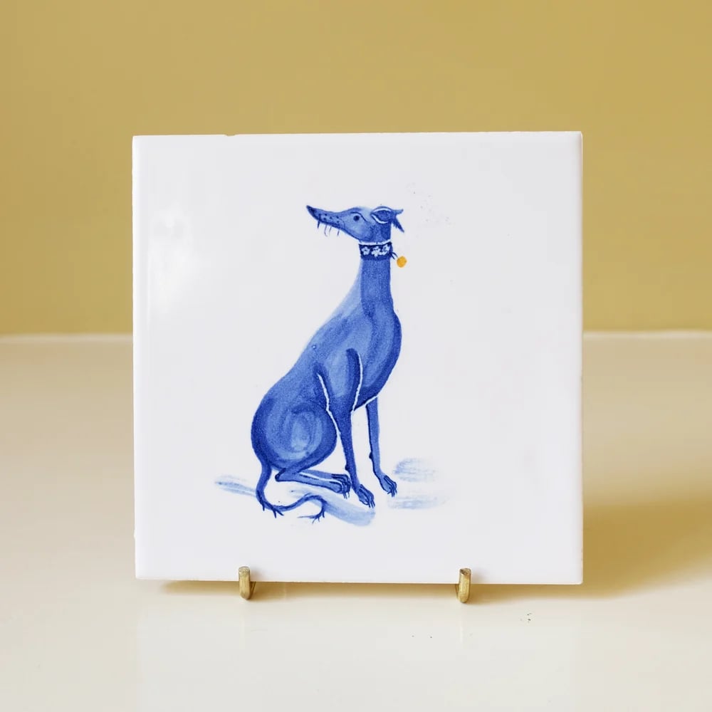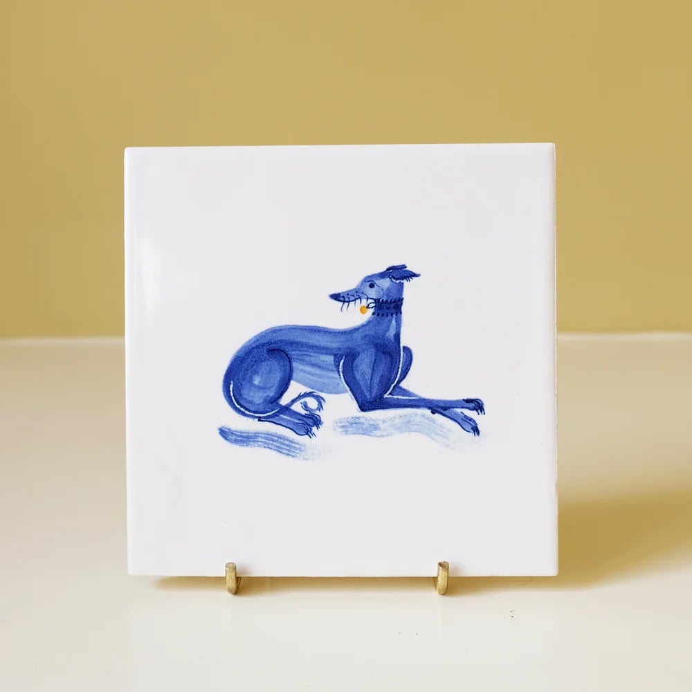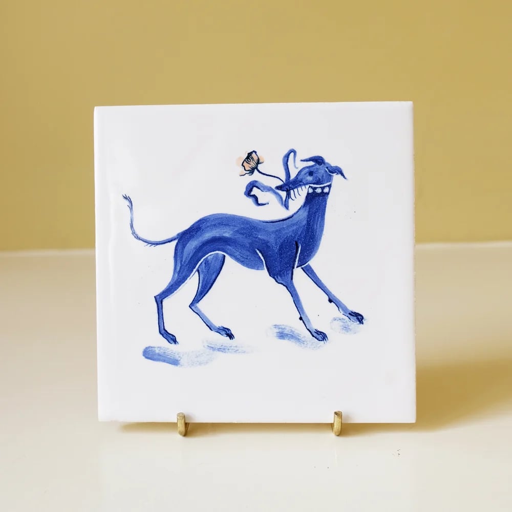 1 whippet with tulip cobalt tile
